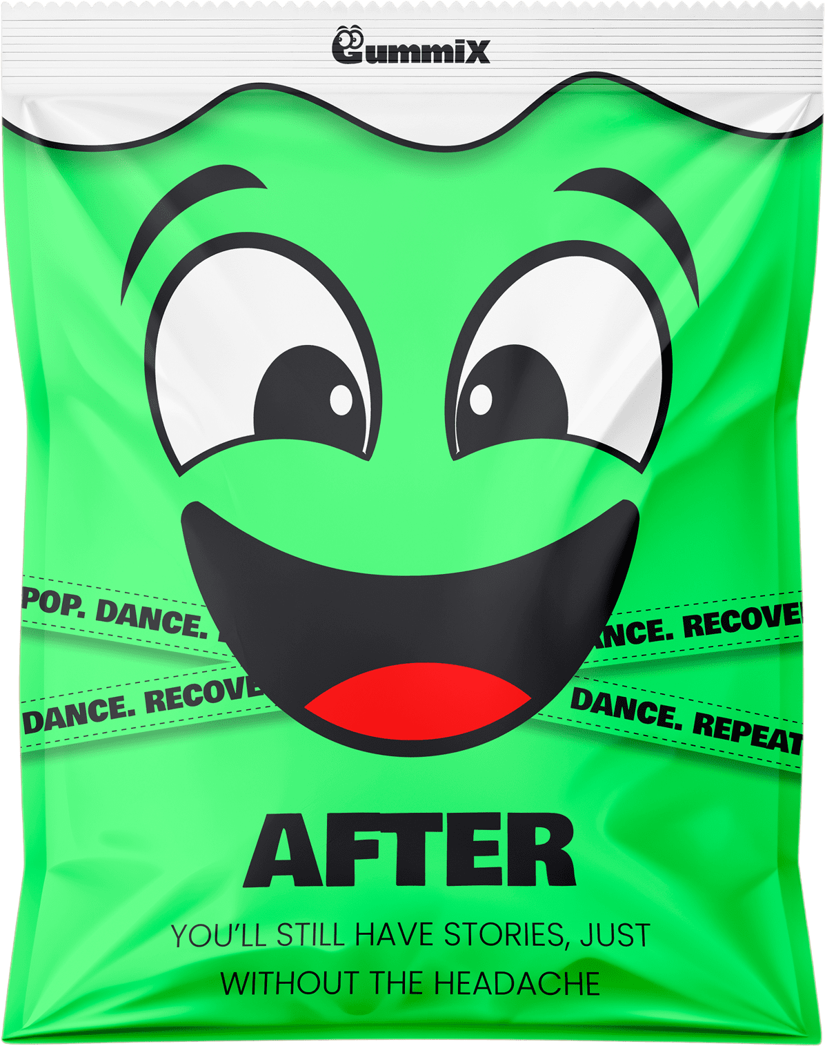 Gummix is your ride-or-die recovery snack for when the bass drops, the shots hit, and reality checks in the next morning.